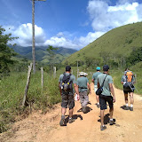 A partir da sub-sede seguimos a estradinha de asfalto até a Represa do Rio Grande em menos de 5 minutos de caminhada, ao lado da represa, no final da estradinha começa a trilha que devemos seguir, depois de 10 minutos na trilha surge a primeira bifurcação, onde existia uma placa com indicação da trilha mas infelizmente hoje só existe a armação de madeira, nessa bifurcação entramos a direita e seguimos por mais quinze minutos para cruzar um rio por cima de um tronco grosso de árvore que está servindo como ponte, esse rio que acabamos de cruzar é o Rio Grande, depois de mais 5 minutos caminhado entramos em uma bifurcação a esquerda (é a única bifurcação a esquerda de toda caminhada), nesse ponto não tem como errar pois é o caminho mais marcado.